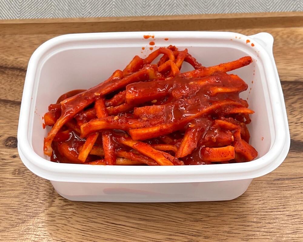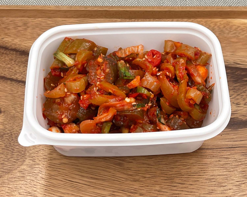 *전통적인 방법으로 직접 오이지를 절여서 양념하기 때문에 약간 짭짤해요.