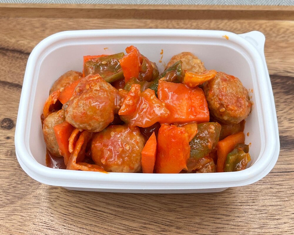 미트볼, 돈가스, 동그랑땡, 고기산적, 햄 : 수입산/국내가공 미역, 미역줄기, 김 :국내산 도토리묵 : 수입산/국내가공