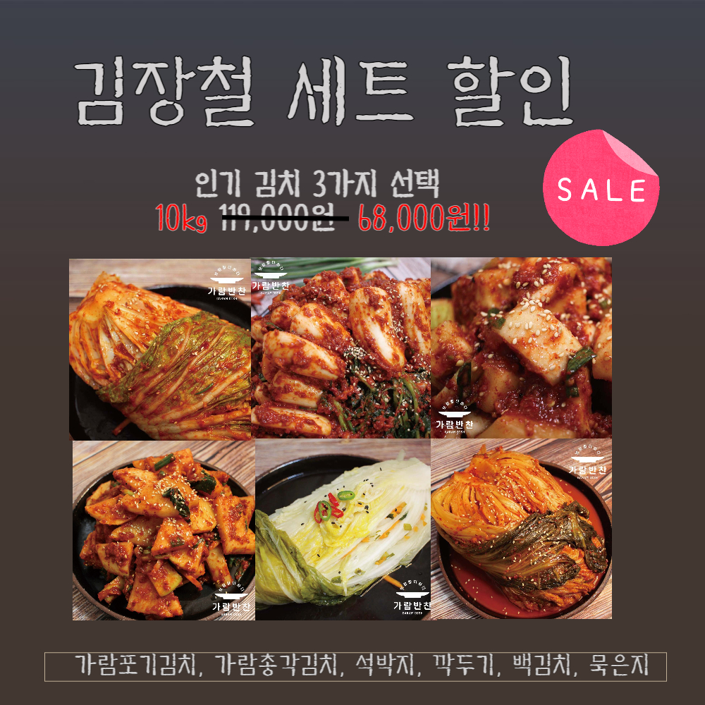 김장철을 맞아 인기 김치 3종을 세트로 구매시 할인하여드립니다.